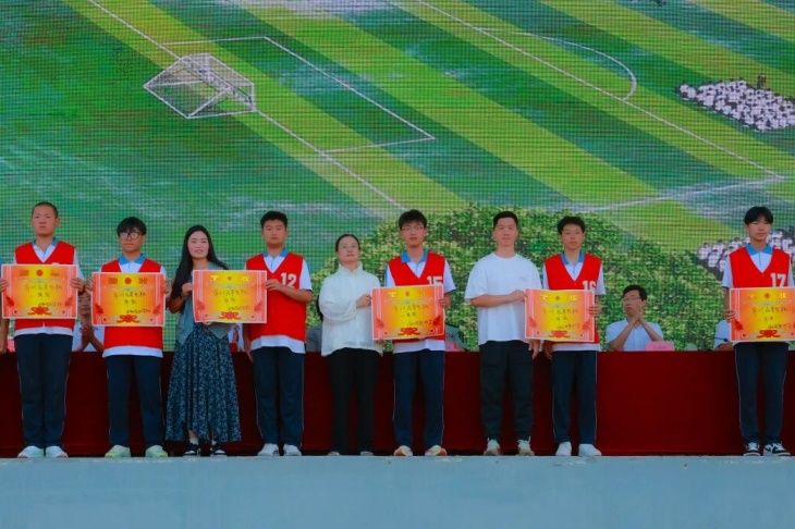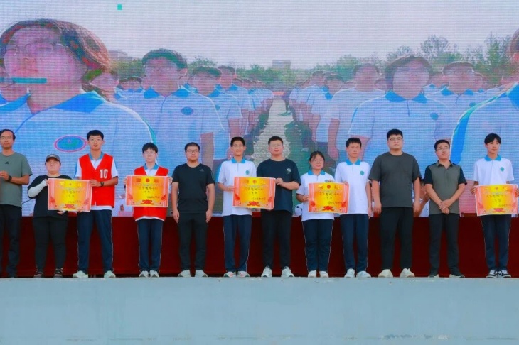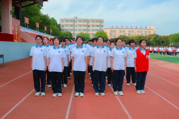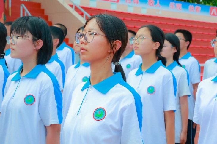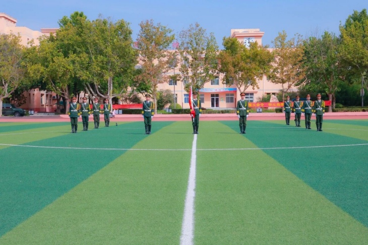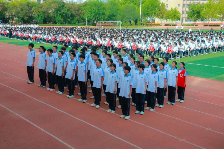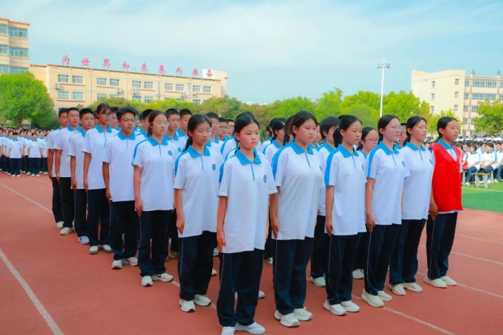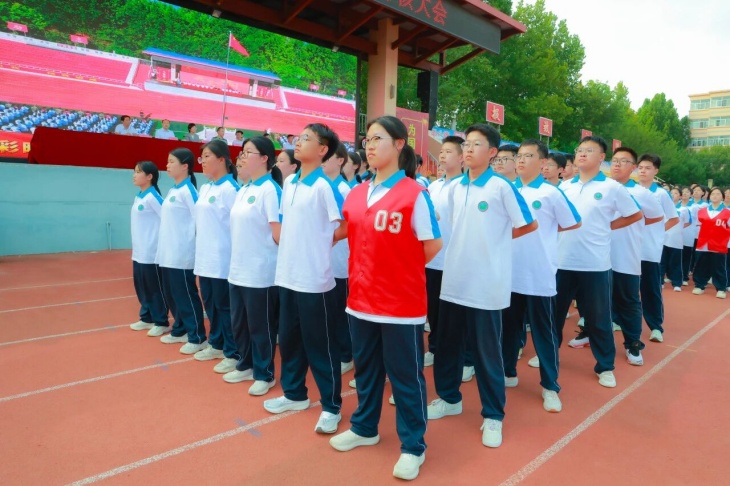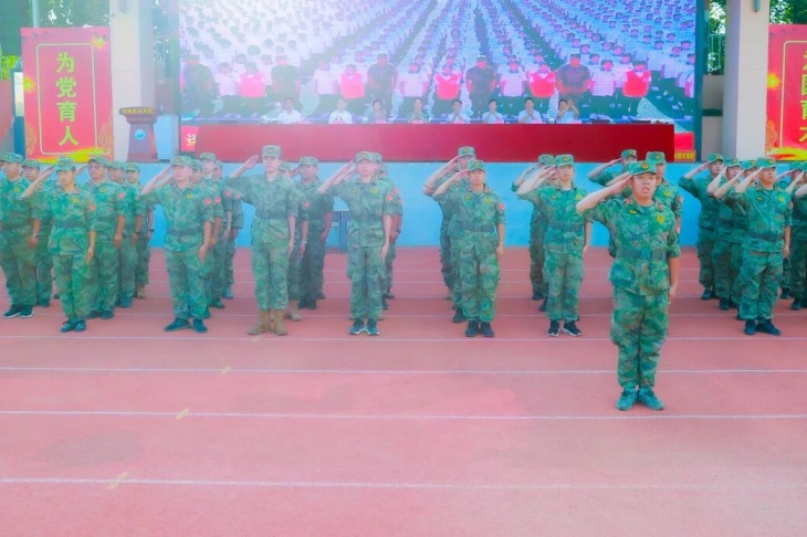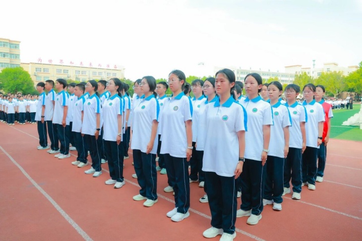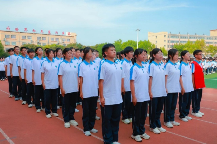 淬火成钢展英姿,青春砺剑启新程。在为期七天的军事训练中,高一新生以汗水浇灌成长,用意志对抗骄阳,以昂扬的斗志和整齐的步伐,成功迈出了高中生涯坚实的第一步。为检验武中学子的军训成果,展现新生蓬勃的军训风采,并进一步激发同学们爱国爱党爱军的炽热情怀,9月7日下午,武邑中学2025级新生军训成果考核大会在操场举行。武邑县人民武装部部长韩重建,武邑中学党委副书记、副校长赵杰翔,武邑中学副校长赵晓艳、金耀辉、高智勇,安全处主任魏红胜,高一年级主任孙涛、贾新亮,以及全体高一师生参加了此次大会。