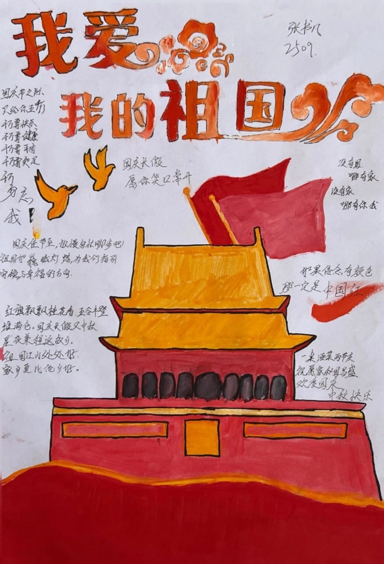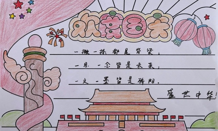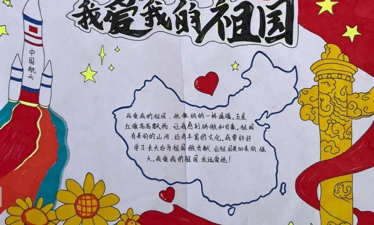 “一笔一划勾勒祖国山河,一字一句诉说赤子之心”,同学们化身 “小小设计师”,将对祖国的热爱融入每一张作品中。